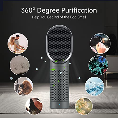 QUEENTY Purificatore d'Aria da Tavolo Vero Filtro HEPA, Filtro Dell'aria Ionizzatore Personale per Allergie, Eliminatore d'Aria agli Ioni Negativi Portatile per Polvere, Fumo, Polline (Grigio Scuro)