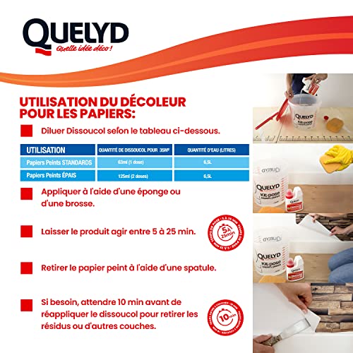 Quelyd Distaccante Sovrapotente Dissoucol - Efficace in 5 minuti su tutte le pareti e le carte dipinte - Detersivo e rimuove i Residui - 1 flacone da 250 ml (140 m²)
