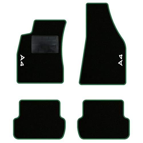 QUEMAR Kit Tappetini Auto compatibili con Audi A4 (B6 B7) 2000-2008 / Set di Tappeti in Moquette e Gomma su Misura (2 Anteriori+2 Posteriori)/Ricami e Colori Personalizzati (Bordo Verde, 2 Ricami)