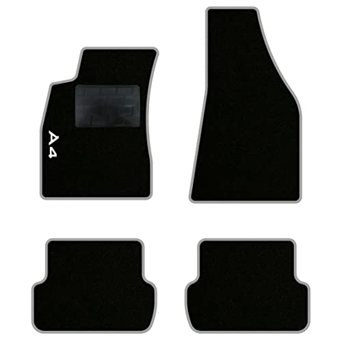 QUEMAR Kit Tappetini Auto compatibili con Audi A4 (B6 B7) 2000-2008 / Set di Tappeti in Moquette e Gomma su Misura (2 Anteriori+2 Posteriori)/Ricami e Colori Personalizzati (Bordo Perla, 1 Ricamo)