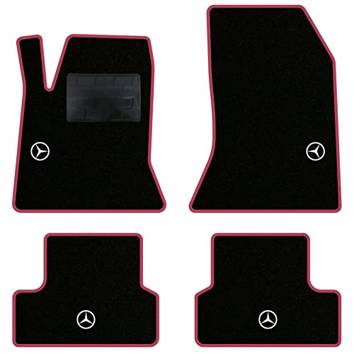 QUEMAR Kit Tappetini Auto compatibili con Classe A W176/B W246/CLA C117/GLA X156 2012-2018/Set Tappeti Moquette e Gomma su Misura (2 Ant.+2 Post.)/Ricami e Colori Personal. (4 Ricami, Bordo Fucsia)