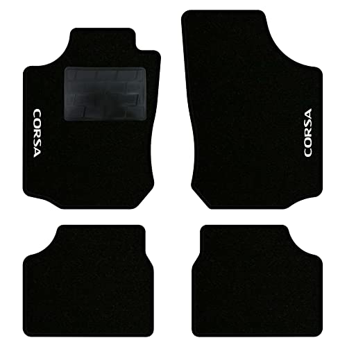 QUEMAR Kit Tappetini Auto compatibili con Opel Corsa C 2000-2006 / Set Tappeti in Moquette e Gomma su Misura (2 Anteriori + 2 Posteriori) / Ricami e Colori Personalizzati (2 Ricami, Bordo Nero)