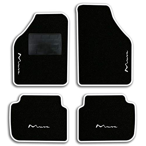 QUEMAR Kit Tappetini Auto compatibili con Lancia Musa 2004-2012 / Set Tappeti in Moquette e Gomma su Misura (2 Anteriori + 2 Posteriori) / Ricami e Colori Personalizzati (4 Ricami, Bordo Bianco)