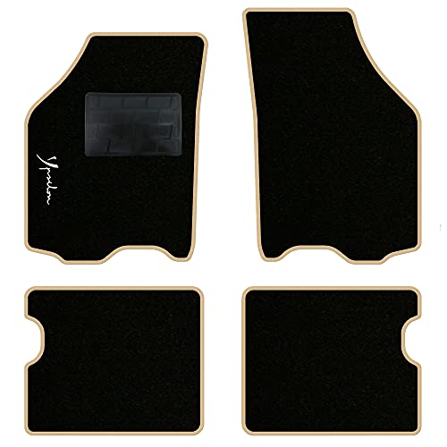QUEMAR Tappetini Auto compatibili con Lancia Ypsilon 3 porte 2003-2011 / Kit Tappeti Moquette e Gomma su Misura (Set 2 Anteriori + 2 Posteriori)/ Ricami e Colori Personalizzati (Bordo Beige, 1 Ricamo)