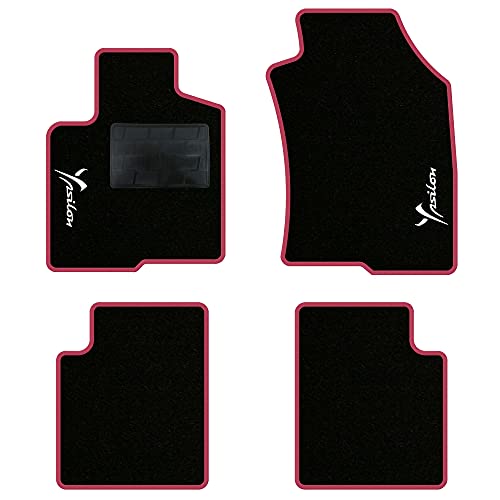 QUEMAR Tappetini Auto compatibili con Lancia Ypsilon 5 porte dal 2011 anche Hybrid/Kit Tappeti Moquette e Gomma su Misura (Set 2 Anter +2 Post)/Ricami e Colori Personalizzati (Bordo Fucsia, 2 Ricami)