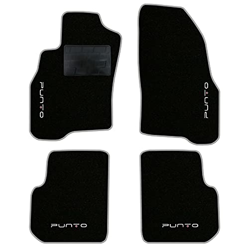 QUEMAR Kit Tappetini Auto compatibili con Punto e Punto EVO 2009-2018/ Set Tappeti in Moquette e Gomma su Misura (2 Anteriori + 2 Posteriori)/Ricami e Colori Personalizzati (4 Ricami, Bordo Perla)