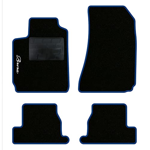 QUEMAR Kit Tappetini Auto compatibili con Alfa Romeo Brera 2005-2011/ Set Tappeti in Moquette e Gomma su Misura (2 Anteriori + 2 Posteriori)/ Ricami e Colori Personalizzati (1 Ricamo, Bordo Blu)