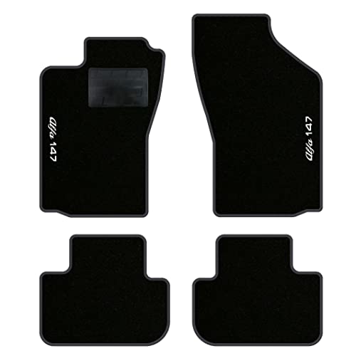 QUEMAR Kit Tappetini Auto compatibili con Alfa Romeo 147 dal 2000 / Set Tappeti in Moquette e Gomma su Misura (2 Anteriori + 2 Posteriori) / Ricami e Colori Personalizzati (Bordo Antracite, 2 Ricami)