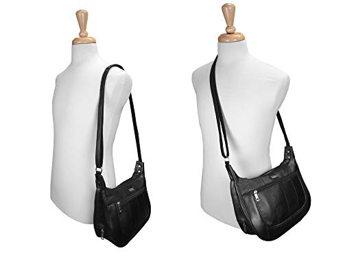 Quenchy London Borsa A Mano Da Donna In Morbida Pelle Nera - Borsa A Tracolla o A Spalla - 5 Tasche Con Cerniera - 2 Scomparti Con Zip - Tasca Porta Ombrello - Borsa Donna Di Medie Dimensioni QL174K