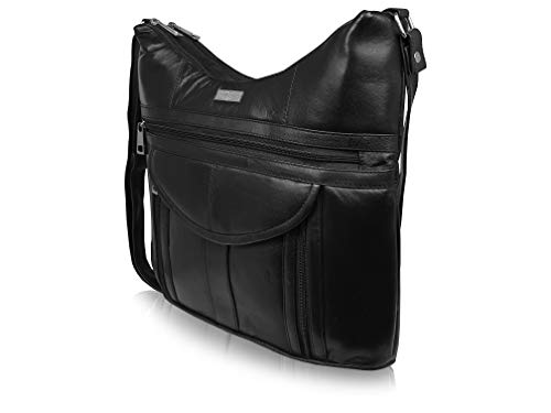 Quenchy London Borsa a Mano con Tracolla da Donna Nera - 7 Tasche - 2 Scomparti con Zip - Tasca Interna Portacellulare o Portafogli - Per Ufficio, Università, Shopping, Viaggio QL176K