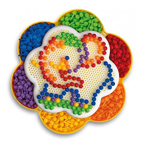 Fare mosaici con i chiodini, inventandoli o copiando gli esempi dell'album incluso, e' un'attività creativa ed educativa che addestra la coordinazione occhio-mano e sviluppa le capacità manipolative