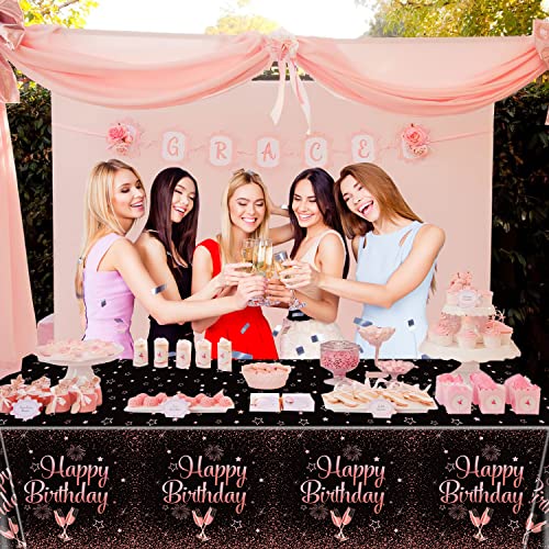 QUERICKY 2 pacchetti di tovaglie oro rosa di buon compleanno, 130 x 220 cm nero e oro rosa rettangolo copritavolo per uomini donne ragazzi ragazze compleanno decorazioni di partito Forniture