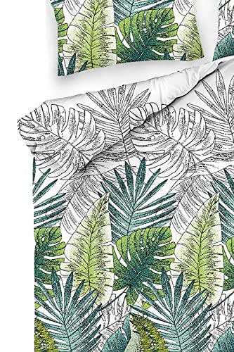 Questo Casa, Set Copripiumino Stampato Doppio Ranforce 100% Cotone Copripiumino: 200x220cm (1 Pezzo), Federa: 50x70 cm (2 Pezzi), Verde