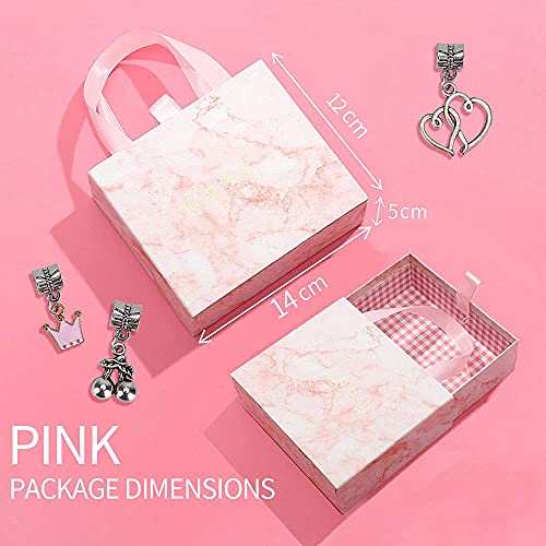 SET COMPLETO DI BRACCIALETTO: Questo nuovo kit di gioielli romantici include 20 perline di metallo, 20 ciondoli e 20 perline rosa, 3 collane d'argento, 1 confezione regalo rosa. Crea una collana bellissima e unica per te stesso.