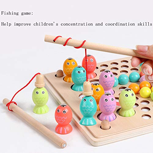 Queta 3 in 1 Giocattoli in Legno Gioco di Pesca Magnetica Clip Perline Giocattoli educativi Gioco di Corrispondenza Gioco da Tavolo Giocattoli magnetici per Ragazzi Ragazze età 2 3 Anni