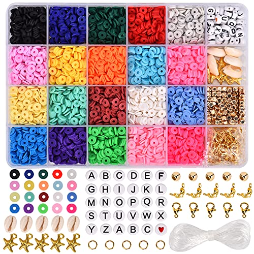 Queta Perline Colorate 24 Colori, 5400 Pezzi 6mm Perline Rotonde Piatte Perline Fatte a Mano in Argilla polimerica per Orecchini Braccialetto Collana Gioielli Fai da Te Artigianato (4000)