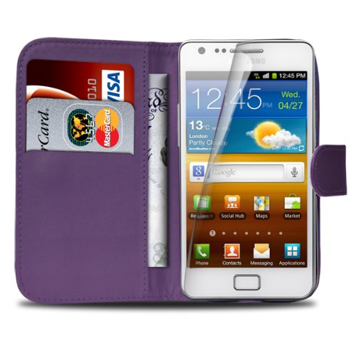 Quick Kiwi - Custodia portadocumenti in similpelle per Samsung Galaxy S2 i9100 con penna capacitiva, pellicola display e panno per pulizia, colore: Viola scuro
