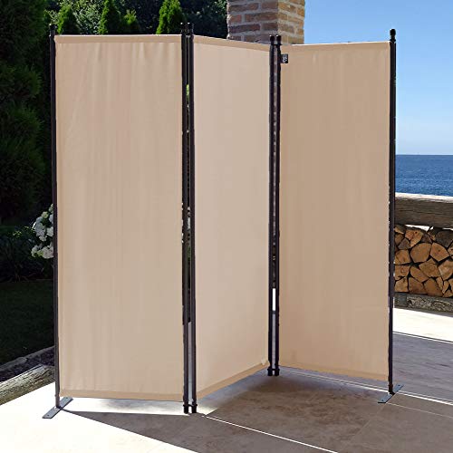 QUICK STAR Paravento da Giardino 170 x 165 cm 3 parti pieghevole Divisorio in Tessuto Protezione della Privacy Beige