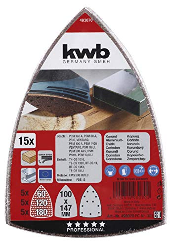 Con il prezioso corindone cosparso carta vetrata, si possono levigare varie superfici in metallo, legno, stucco, pietra e plastica, adatte anche per lacca e vernice (kwb Art. No.: 493070), Made in Europe