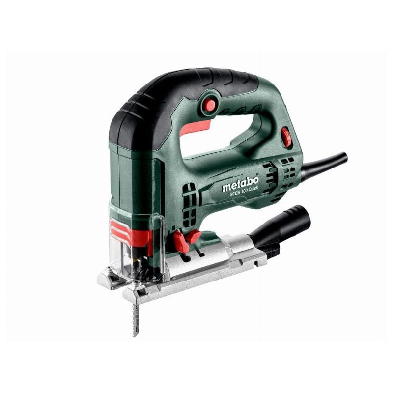 Seghetto alternativo universale per una guida precisa durante il taglio La possibilità Per regolare la velocità, il dispositivo a pendolo e il guidalama basso caricato a molla consentono un taglio preciso e adattato. al materiale Sistema Metabo Quick per il cambio lama senza attrezzi con espulsione automatica Manubrio con superficie Softgrip antiscivolo Soffiatore di trucioli disattivabile definitivamente visibilità dell'area di taglio Sistema automatico elettronico Vario-Constamatic (VC) a onda intera per lavorare con velocità adattate ai materiali e che rimangono quasi costanti sotto carico Possibilità per collegare un aspirapolvere multiuso Vetro protettivo prigioniero inferiore per un'aspirazione efficiente e come protezione contro i trucioli Binario di guida e dispositivo di guida disponibili come opzione