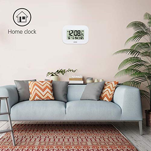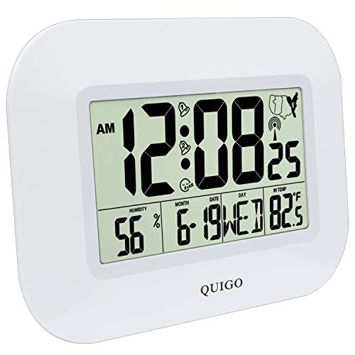 QUIGO Orologio da parete digitale Atomic grande allarme a batteria per camera da letto, cucina, ufficio, scrivania 35,6 cm (bianco)