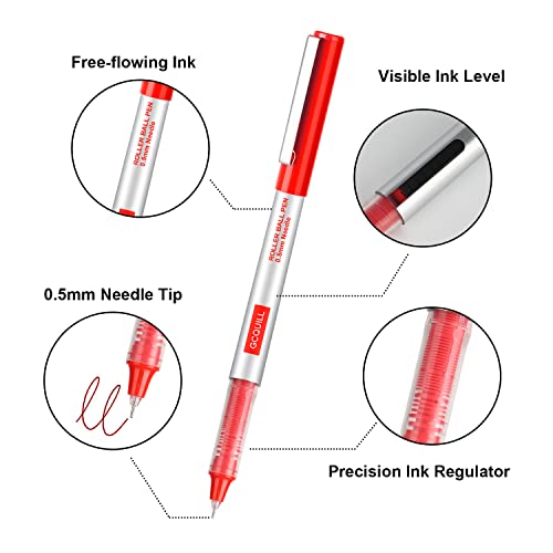 GC QUILL 24 Pezzi Penna a Inchiostro Liquido da 0,5 mm ad asciugatura rapida, a lunga durata, per scrittura, diario, appunti, forniture scolastiche per ufficio (rosso) GC-RBP-RD03
