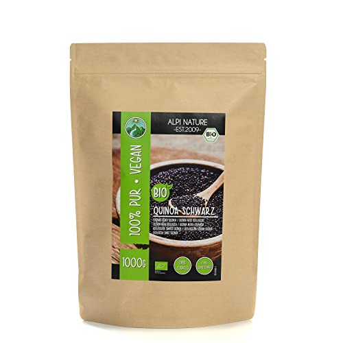 Quinoa nera biologica (1kg), quinoa biologica nera da agricoltura biologica certificata, senza glutine, senza lattosio, testata in laboratorio, vegana, 100% naturale senza additivi