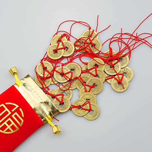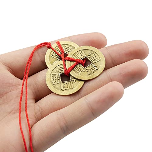 Quiodok 10 Pezzi Moneta Triangolare in Rame Monete Cinesi Portafortuna Monete di Feng Shui con 6 Borse Fortunate Monete Portafortuna Adatto Soggiorno, Camera, Ufficio, Decorazione Auto