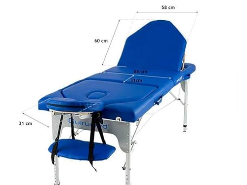 QUIRUMED Barella pieghevole, doppio schienale pieghevole, alluminio, similpelle, colore blu, 186 x 66 cm, portatile, testa rimovibile, foro facciale, altezza regolabile, fino a 150 kg