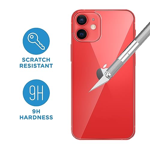 QUITECO Vetro Temperato Retro Posteriore per iPhone 12 Mini [2 PEZZI], Pellicola Protettiva, Vetrino Protezione Anti Graffio, Anti-Impronte, Durezza 9H, 0,26mm Ultra Trasparente