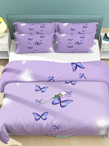 Quixora Copripiumino 3D Set Biancheria Letto farfalla viola 3 Pezzi in Microfibra con Chiusura Federa Cerniera Set Copripiumino Matrimonial 155 x 200 cm
