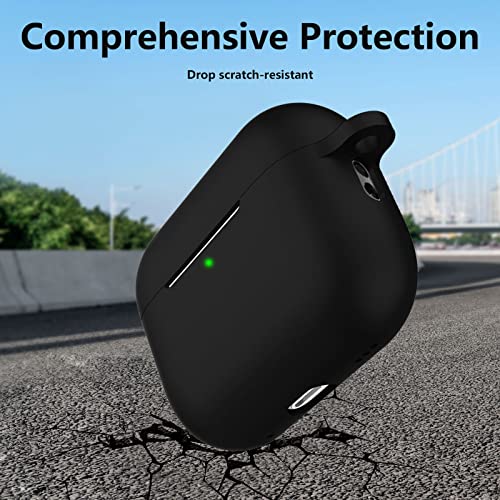 QULLOO Custodia Compatibile con AirPods Pro 2, Cover Protettiva in Silicone [Funziona la Ricarica Wireless] con Moschettone - Nero