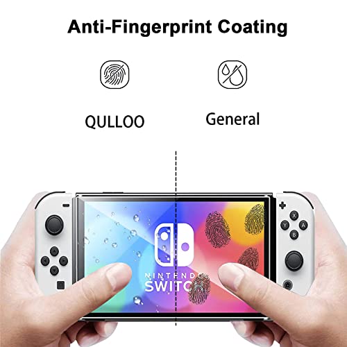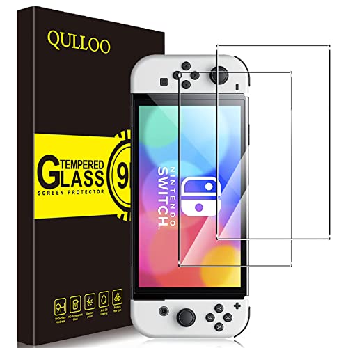 QULLOO Vetro Temperato Pellicola Protettiva per Nintendo Switch Oled 2021, [2 Pezzi] 9H Durezza Full Coverage Protezione Schermo in Vetro Temperato