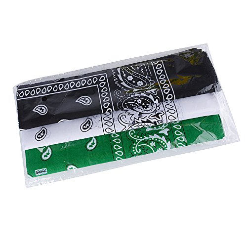 QUMAO (100% Cotone) 3 pz Bandane Multicolori per Capelli al Collo in Testa Modelli di Paisley Bandana Uomo Sciarpa Fazzoletti da Taschino (1 pz nero + 1 pz bianco + 1 verde)