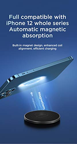 【Per iPhone 12 tutta la serie】 Caricabatterie rapido wireless magnetico ultrasottile personalizzato per iPhone 12 Mini / iPhone 12 / iPhone 12 Pro / iPhone 12 Pro Max. 【Ricarica wireless magnetica】 Il caricabatterie wireless magnetico è appositamente progettato per l'allineamento magnetico della serie iPhone 12, la forte funzione di assorbimento magnetico consente di regolare l'angolo liberamente senza deviare dal centro del caricabatterie