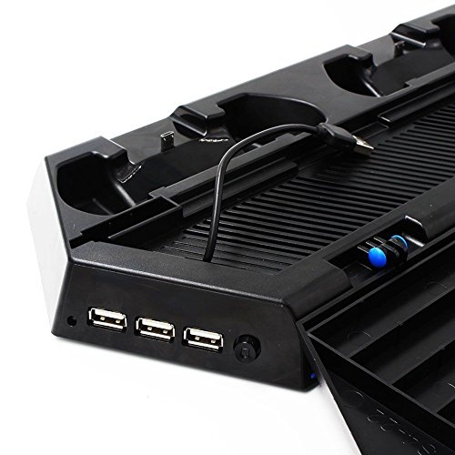 QUMOX Supporto PS4 Verticale Supporto Doppie Porte USB HUB Caricatore Fan 14 Slot