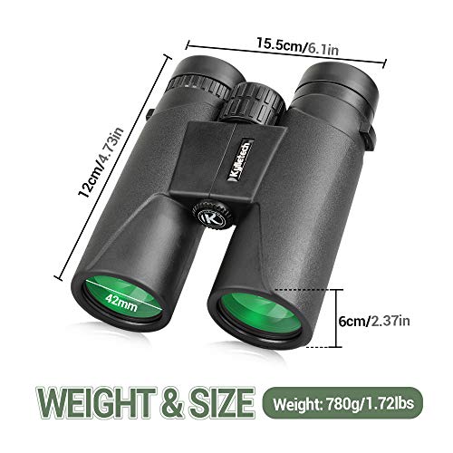 QUNSE 12x42 Binocolo Professionale Compatto HD, Prisma a Tetto Bak7 e Lenti Ottiche FMC Adatto al Bird Watching, Campeggio, Da Teatro, Concerti, Caccia, safari all'aperto (12x42)