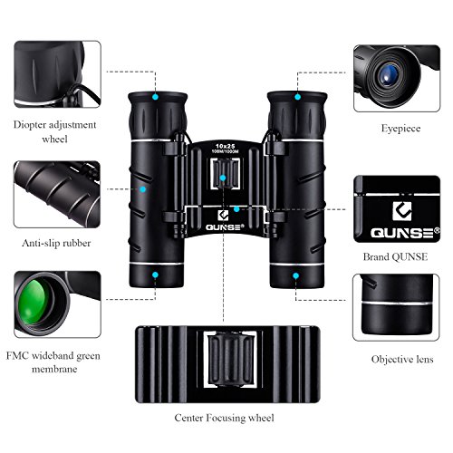 QUNSE Binocolo 10X25 Professionale, Lenti Trasparenti, Visione Ultra, Mini Design Compatto, Tascabile