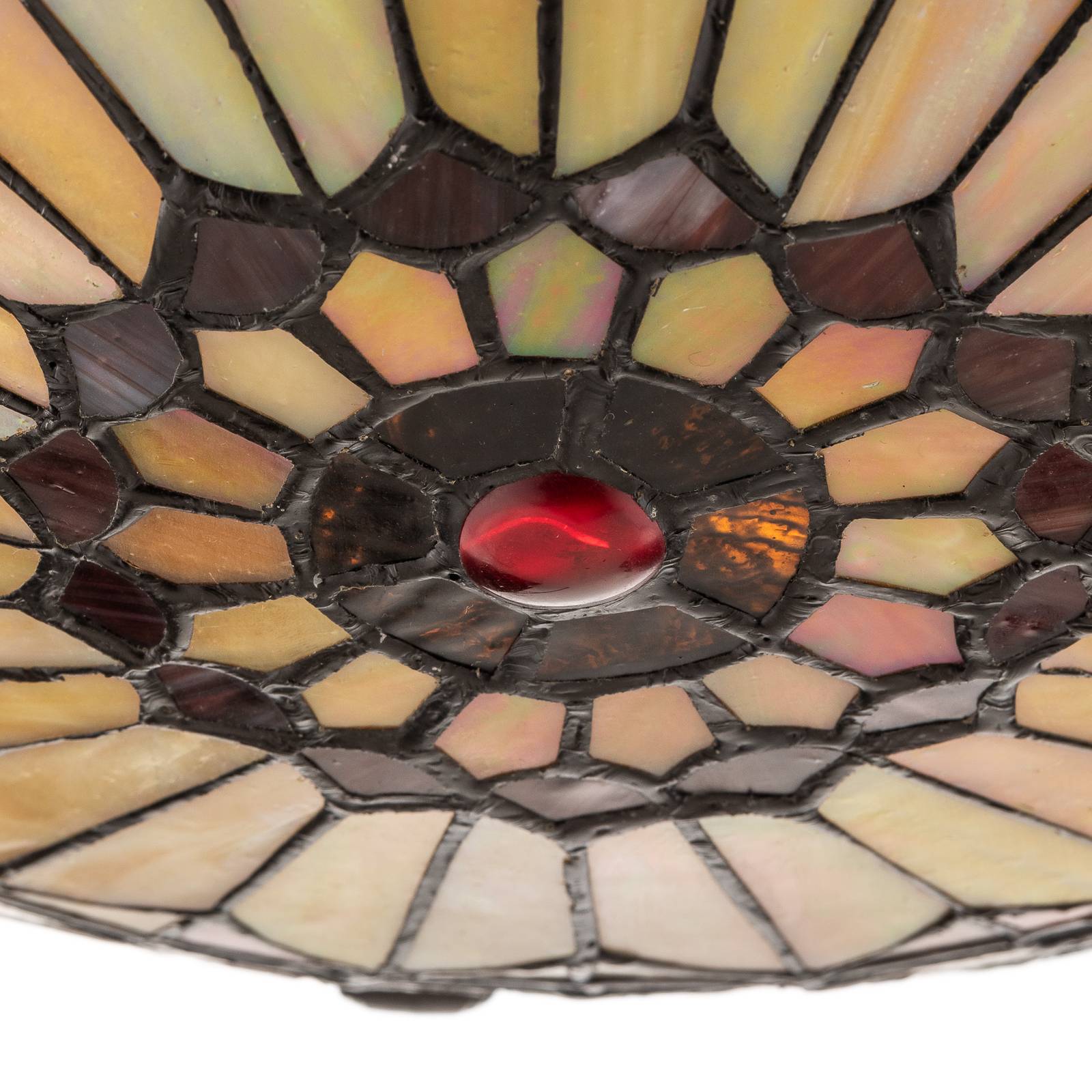 Plafoniera colorata West End in design Tiffany La plafoniera West End è un elemento decorativo senza tempo per una casa elegante. Il paralume è fissato ad un baldacchino metallico ad una leggera distanza dal soffitto. Il paralume è composto da 262 parti in vetro e crea una luce accogliente e diffusa grazie alla sua calda colorazione. I due portalampade E27 all'interno possono essere montati singolarmente con le lampade corrispondenti. I materiali robusti sono fatti a mano insieme e combinati con quello di Louis C. Tiffany ha sviluppato il processo. Attualmente, la varietà di colori e la maestria artigianale delle lampade Tiffany è particolarmente apprezzata.