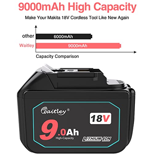 QUPER - Batterie di ricambio agli ioni di litio da 18 V 9,0 Ah bl1890 (con display di alimentazione a LED) Compatibili con Ma_ki_ta DKP180Z,DTM51Z,DHS680Z,DTD152Z,DJV181Z,DGA452Z,DTD152Z LXT,DJR188Z.