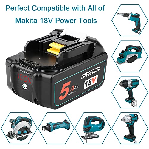 QUPERR - Batterie di ricambio agli ioni di litio 18V 5.0Ah bl1850 (con display di alimentazione a LED) Compatibili con Makita DKP180Z, DTM51Z, DHS680Z, DTD152Z, DJV181Z, DGA452Z, DTD152Z LXT, DJR188Z.