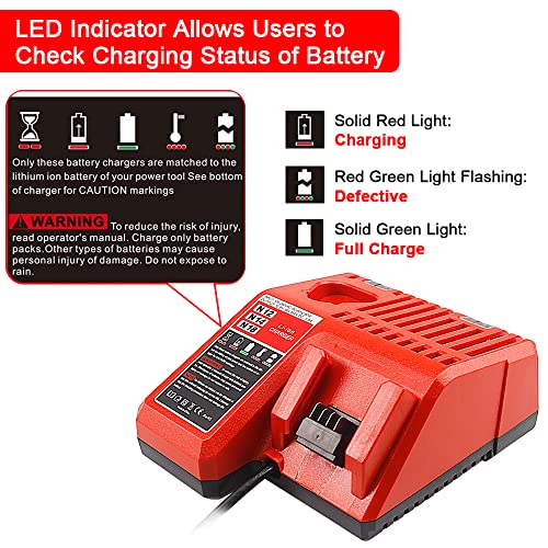 QUPERR Caricabatterie rapido di ricambio M12 e M18 per Milwaukee 12V e 18V XC Caricabatterie agli ioni di litio per Milwaukee XC 48-59-1812 48-11-2420 48-11-2402 Batteria