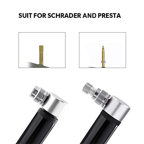 QUTAII Mini pompa per bicicletta, pompa ad aria per pneumatici da bicicletta, per Presta e Schrader (12 x 7,4 x 7 cm)