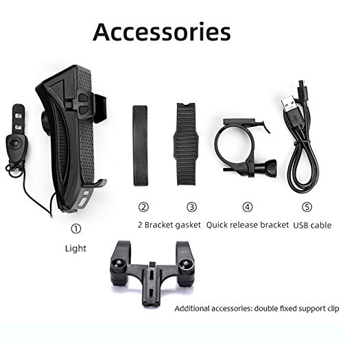 QWERDF 4in 1 luci Bicicletta Set Impermeabili Luce Bici Anteriore, Corno da Ciclismo LED Lampada Super BrillanteSupporto per Telefono Mobile Antiurto con Power Bank,Black