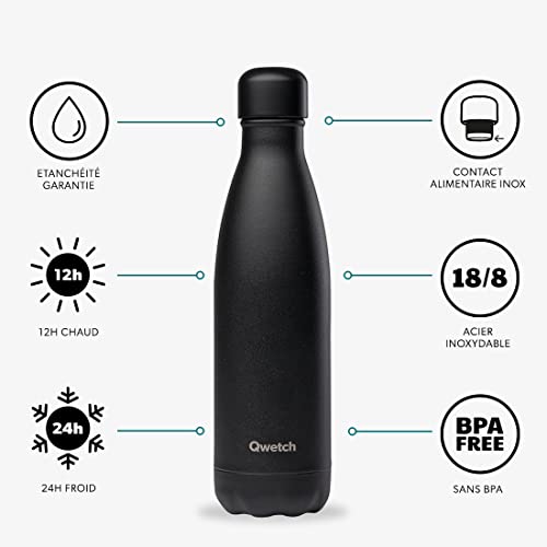QWETCH - Bottiglia Isotermica Originals - All blackNero 500ml - Bottiglia Nomade in Acciaio Inox - 24h Fredda & 12h Calda - Impermeabile, senza BPA