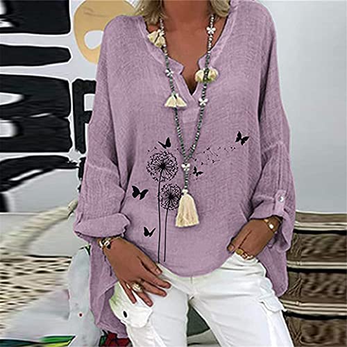 QWEWQE Camicia da donna oversize, in lino, con scollo a V, elegante, con stampa a farfalla, casual, da donna, A11, XXXXL