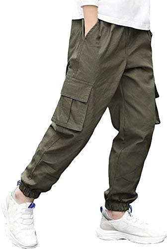 QWEWQE Pantaloni da jogging per grandi ragazzi, in cotone, pantaloni cargo, per bambini, sportivi, primavera, autunno, inverno, pantaloni cargo, verde, 134 cm-140 cm