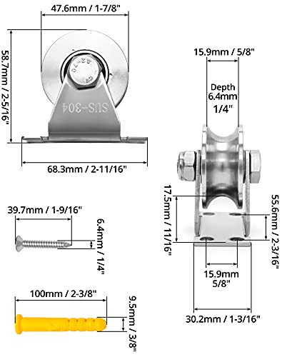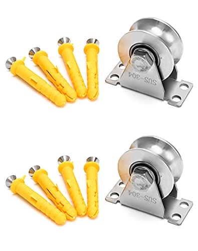 QWORK - 2" / 50mm Carrucola per sollevamento, puleggia a U in acciaio inox, per funi metalliche, 2Pc, Cuscinetto di Carico: 400KG