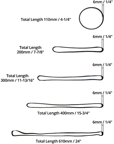 QWORK 5 Pcs GT2 Cinghia Dentata ad Anello Chiuso Cinghia di Gomma 6mm Larghezza Adatto per Stampante 3D 110mm 200mm 300mm 400mm 610mm