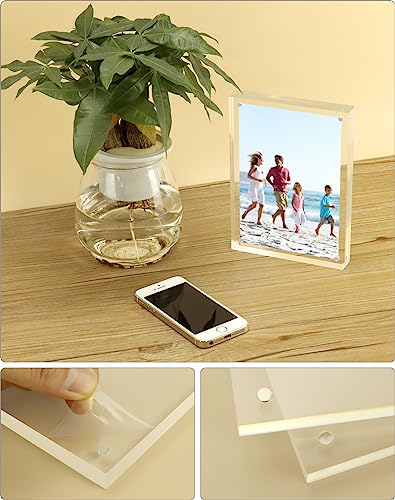 ACRILICO TRASPARENTE: la cornice per foto in acrilico da scrivania è trasparente su entrambi i lati, 10 mm + 10 mm di spessore, con una maggiore resistenza agli urti. È forte e stabile sia in modalità verticale che orizzontale. Utilizziamo quattro magneti piccoli e potenti per tenere saldamente insieme i blocchi acrilici ultra trasparenti.